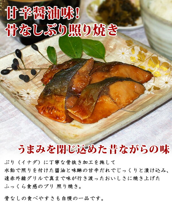 骨なし ぶり 照り焼き 焼き魚【20g鰤×10切れ】骨なし ぶり 照り焼きはぶりの骨を抜いて甘辛だれで焼き上げたふっくら食感の焼き魚! ※ 上記内容に沖縄県・北海道の送料は含まれておりません※ 沖縄県500円、北海道1000円の送料が別途必要です お弁当のおかず 朝食 夕食 ランチ 昼食 家族団らんのひと時にぜひご活用ください! ☆