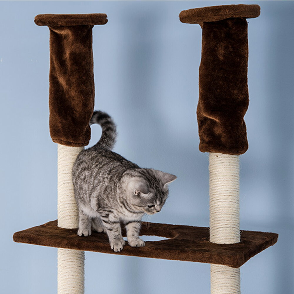 商品紹介 商品名 キャットタワー 材質 支柱 : 紙管、麻紐 張り材 : ポリエステル 板材 : パーティクルボード おすすめポイント ※運動不足のネコちゃんに最適なキャットタワー ※高いところが大好きなネコちゃんのための台座 ※狭いところでこっそり身を潜められる隠れ家 ※上り下りしやすい階段 ※支柱は全て麻紐仕様 ※2〜3匹飼いに最適なサイズ お手入れ 掃除機やコロコロや専用のブラシをご使用いただき、こまめにお手入れしてください。