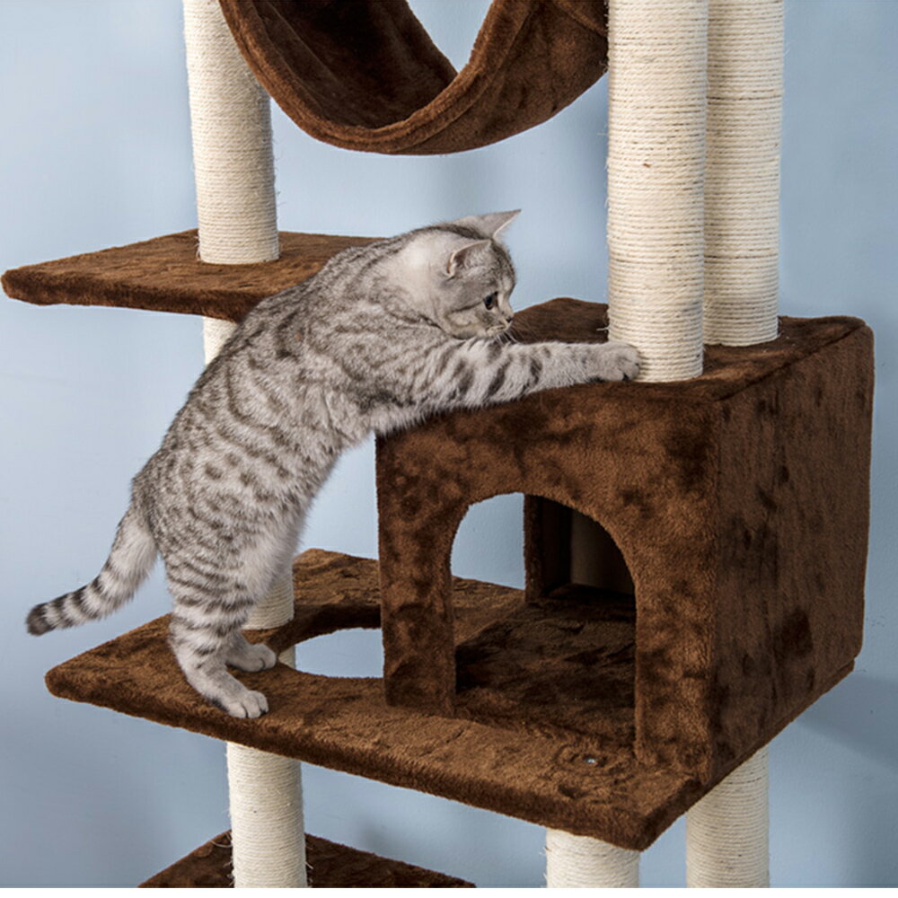 ャットタワー 突っ張り 全面麻紐 スリム 省スペース おしゃれ 全高233-253cm 爪研ぎ ハンモック付き 階段 つっぱり 猫タワー キャットハウス 猫ベッド 隠れ家 ペット用品 cattower