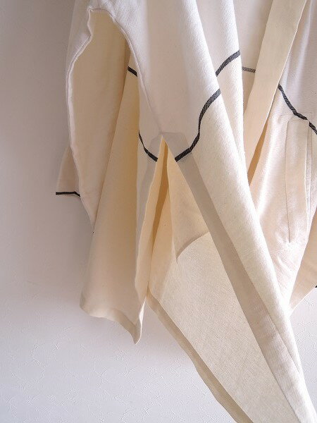フロントはオープンの着物のような羽織りデザインで、両腰ポケット&両裾サイドにスリット入りです。