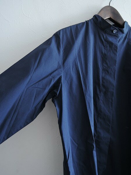 カラーはネイビー(表記はDARK INDIGO)で、ハリ&シャリ感のあるコットン地で仕立てられています。