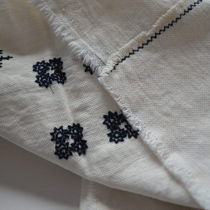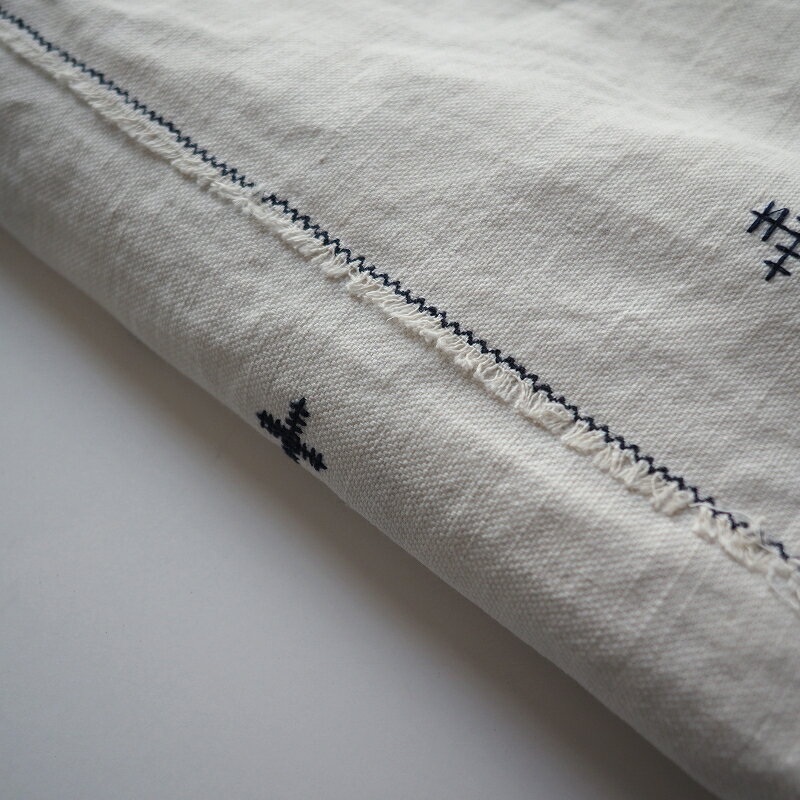 深いインディゴ色の糸で施された刺繍がポイントです。